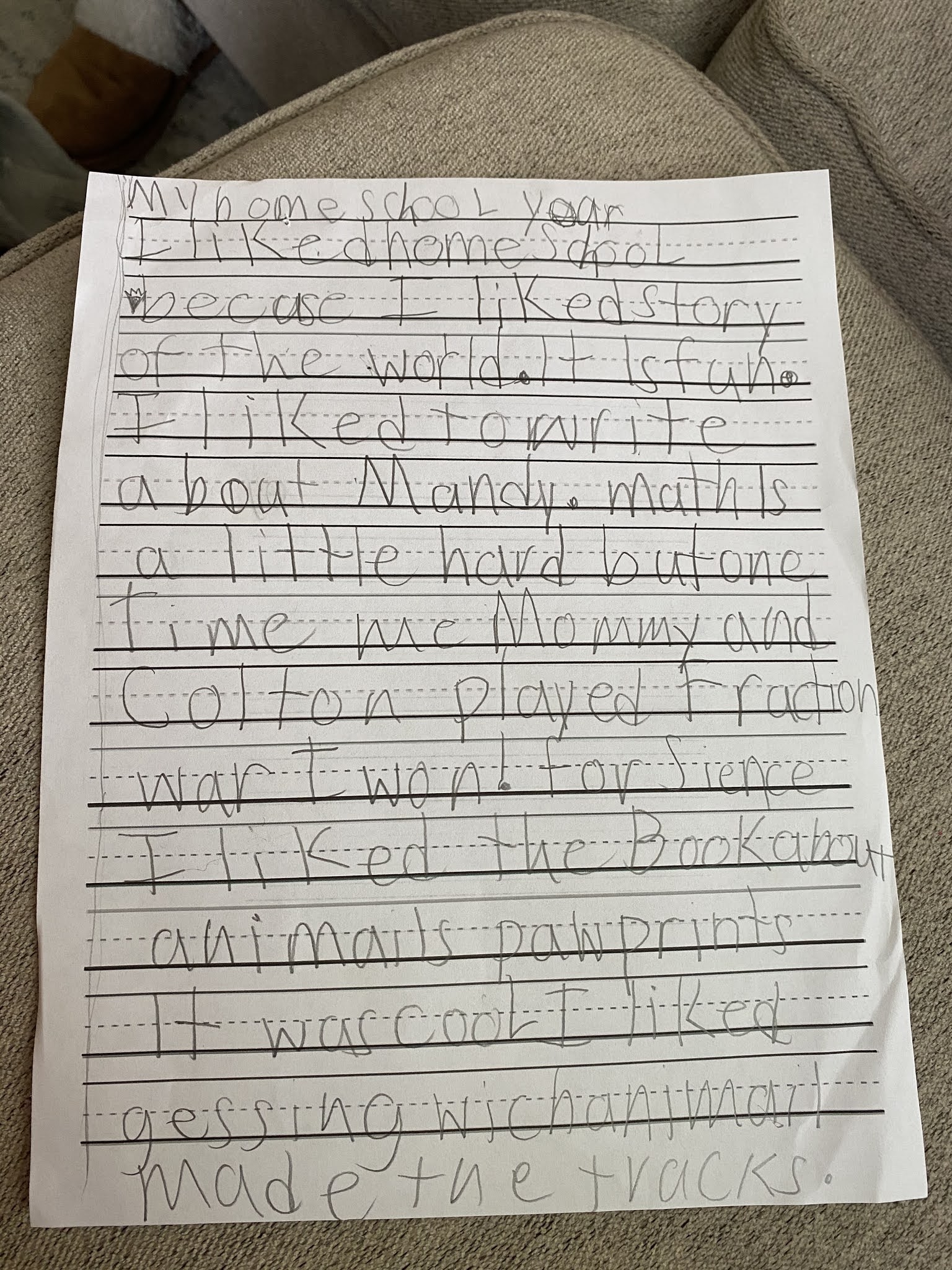 What a year! What a blessing year like no other to be able to be home with my favorite kiddos EVERY DAY and do school together. I am so, so, so grateful for the time God gave us together this year. We wrapped up our year with an ABC countdown created by the kids....they each wrote down a way that we could celebrate the last month of school, each starting with a different letter of the alphabet, and then they voted for whose idea they would choose for each day. The final countdown was as follows: